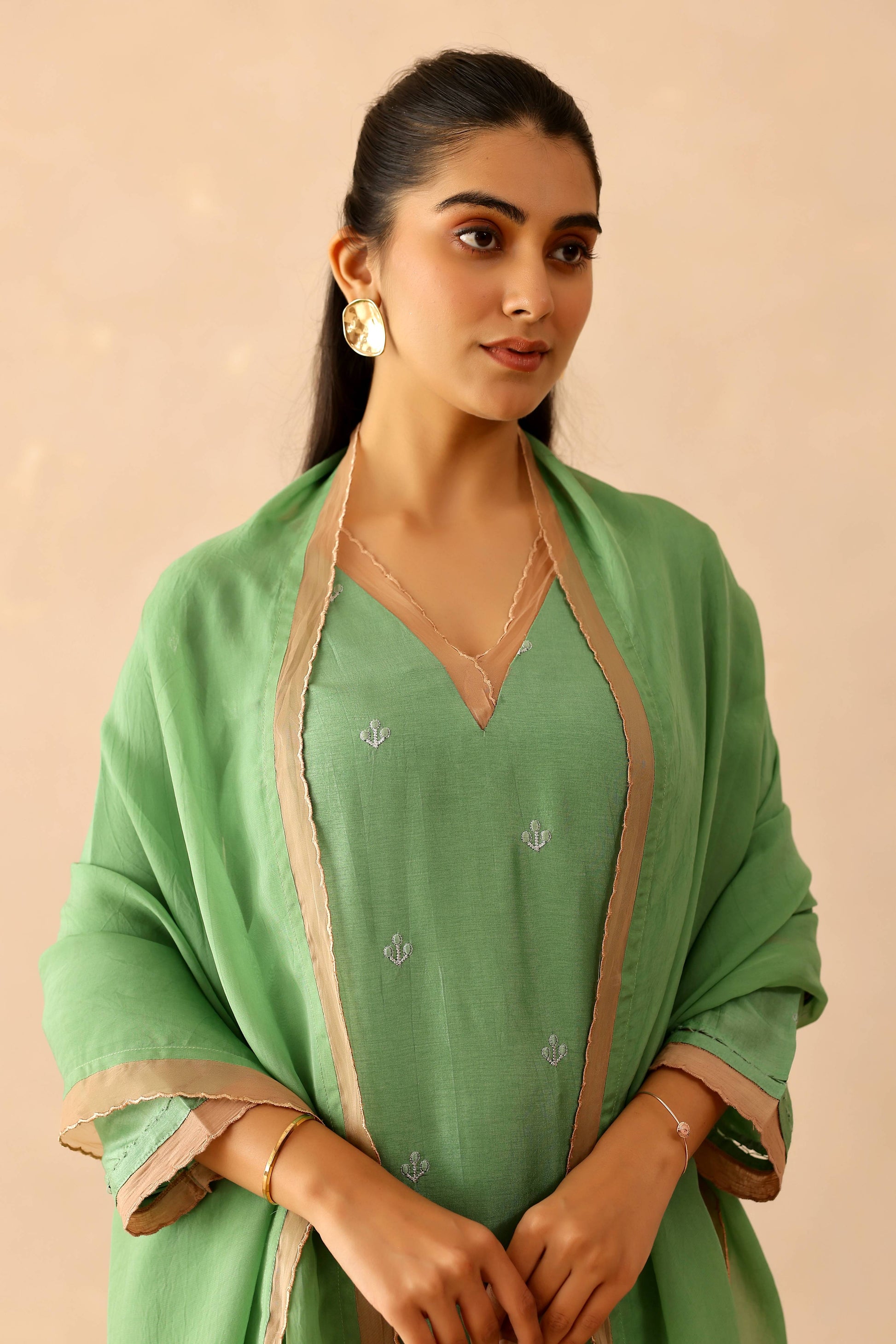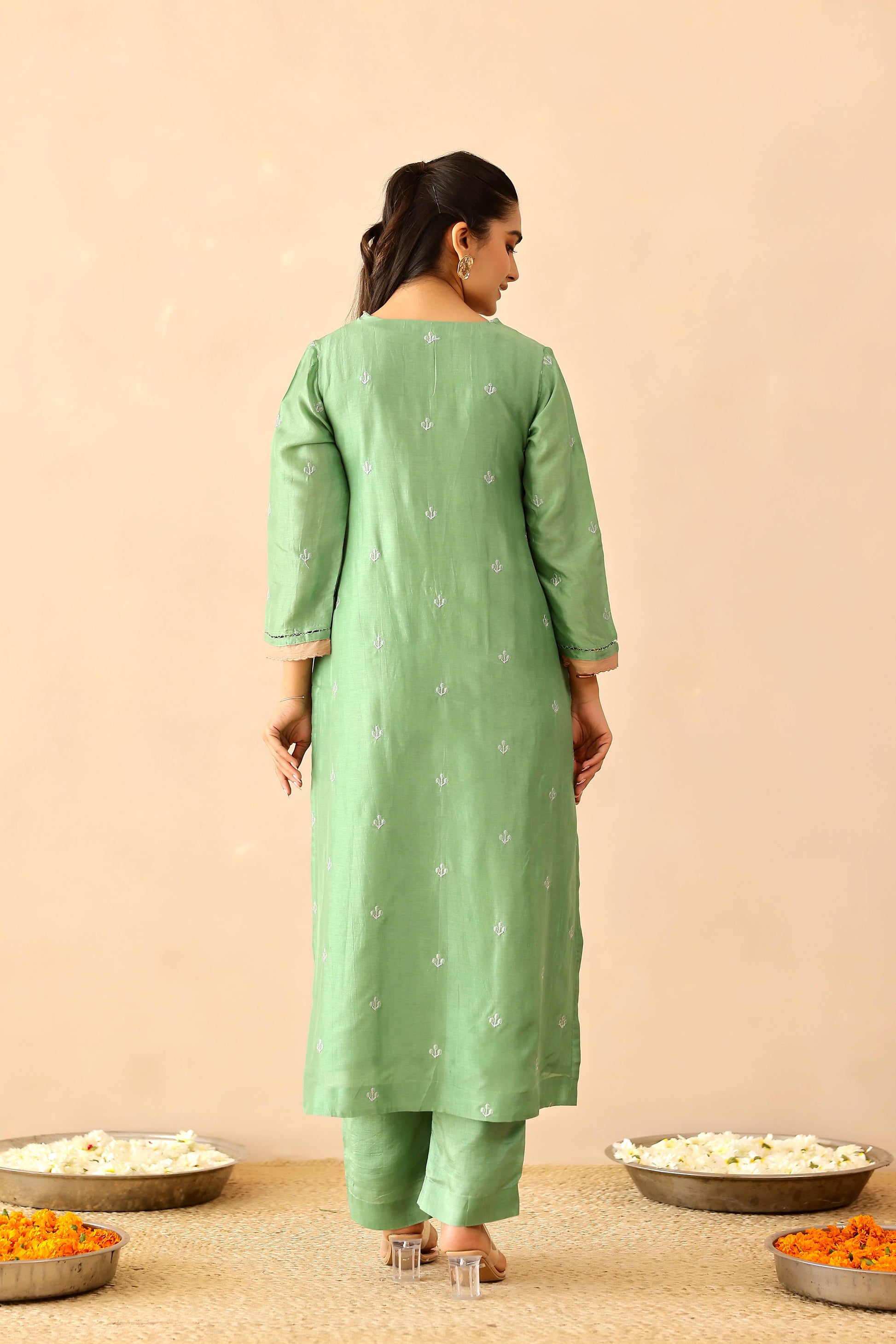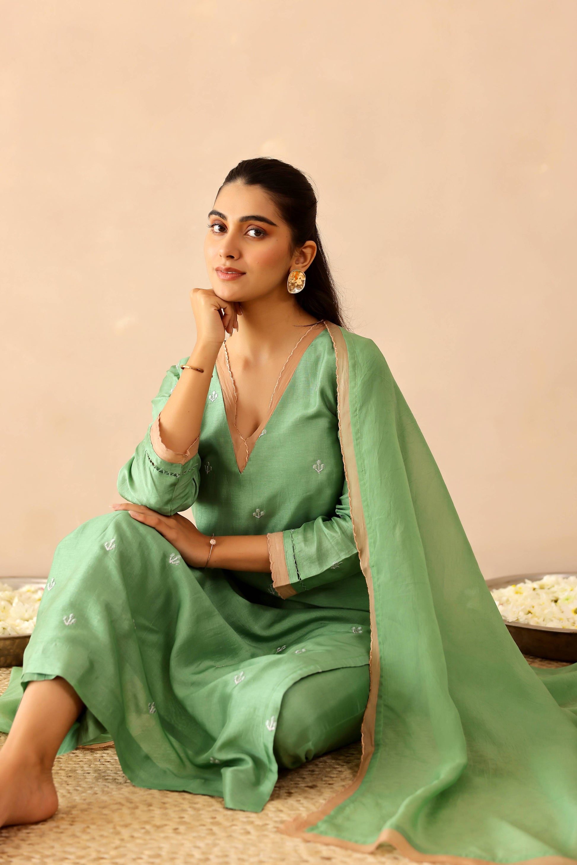 Green & Beige Peony Suit set